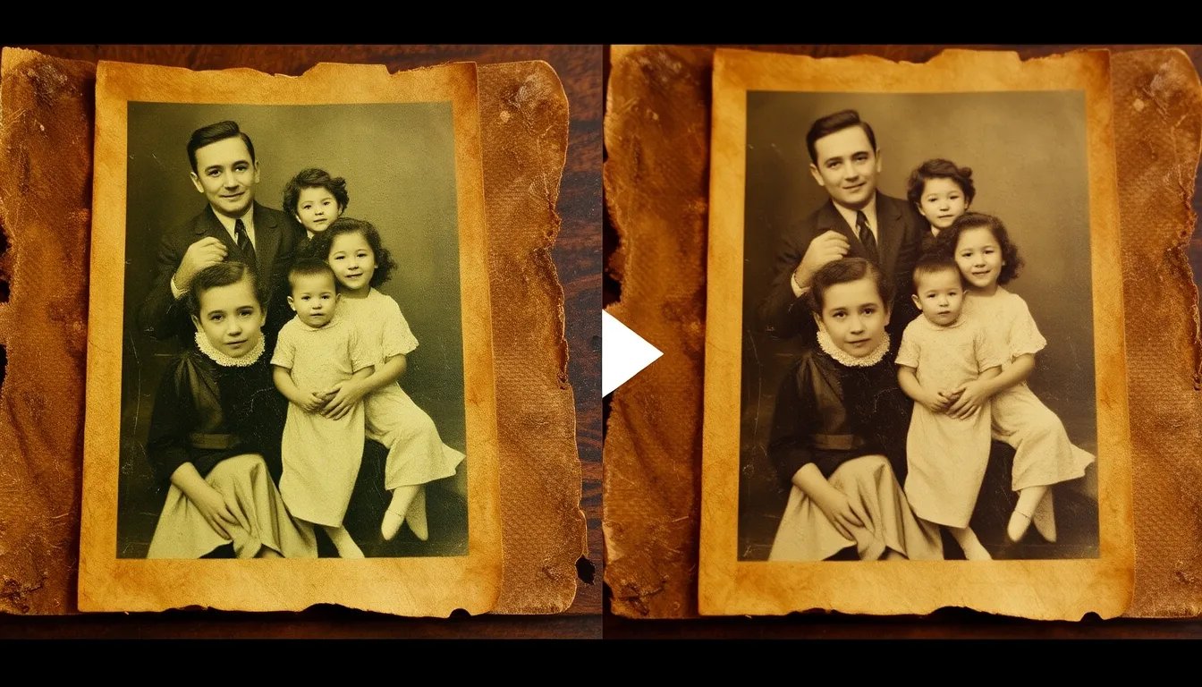 Mix nostalgic footage with modern AI enhancements for generational impact. Use this restoration template: