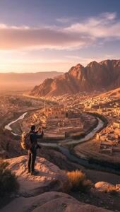 La IA a menudo puede generar u obtener imágenes representativas (como imágenes/videos de stock o escenas generadas por IA) basadas en tu descripción textual del destino.